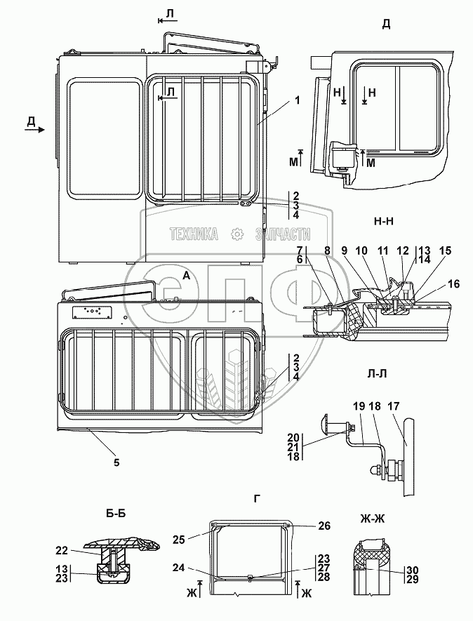 Каталог запасных частей к технике: Промтрактор ТГ-302Я. Кабина