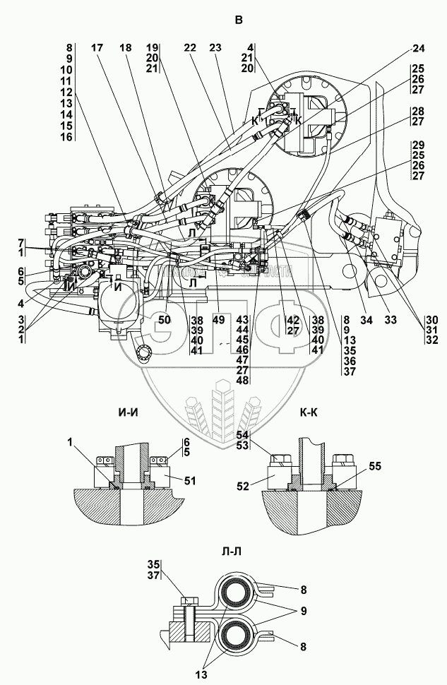 Каталог запасных частей к технике: Промтрактор ТГ-302Я. Установка гидросистемы
