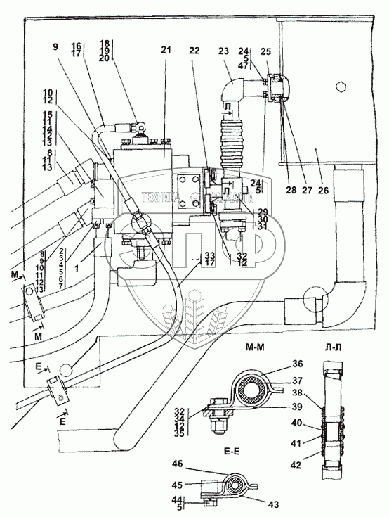 Каталог запасных частей к технике: Промтрактор ТГ-503К. 313502-26-1СП Установка гидросистемы