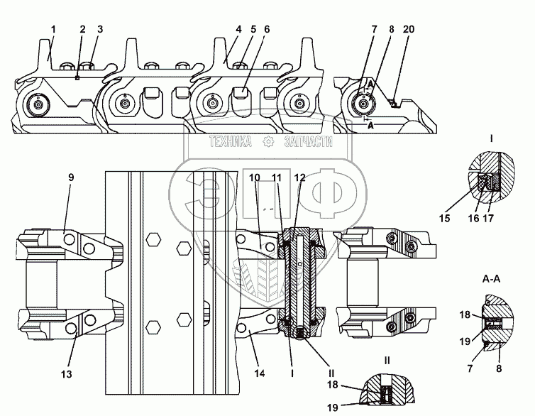 Каталог запасных частей к технике: Промтрактор ТГ-503Я. 3501-22-1-05СП Гусеница