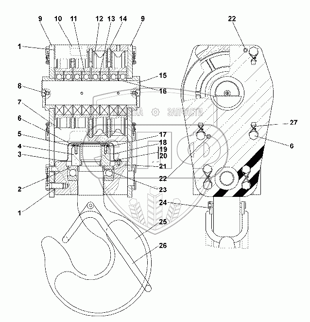 Каталог запасных частей к технике: Промтрактор ТГ-511. 313502-92-390СП Подвеска крюка