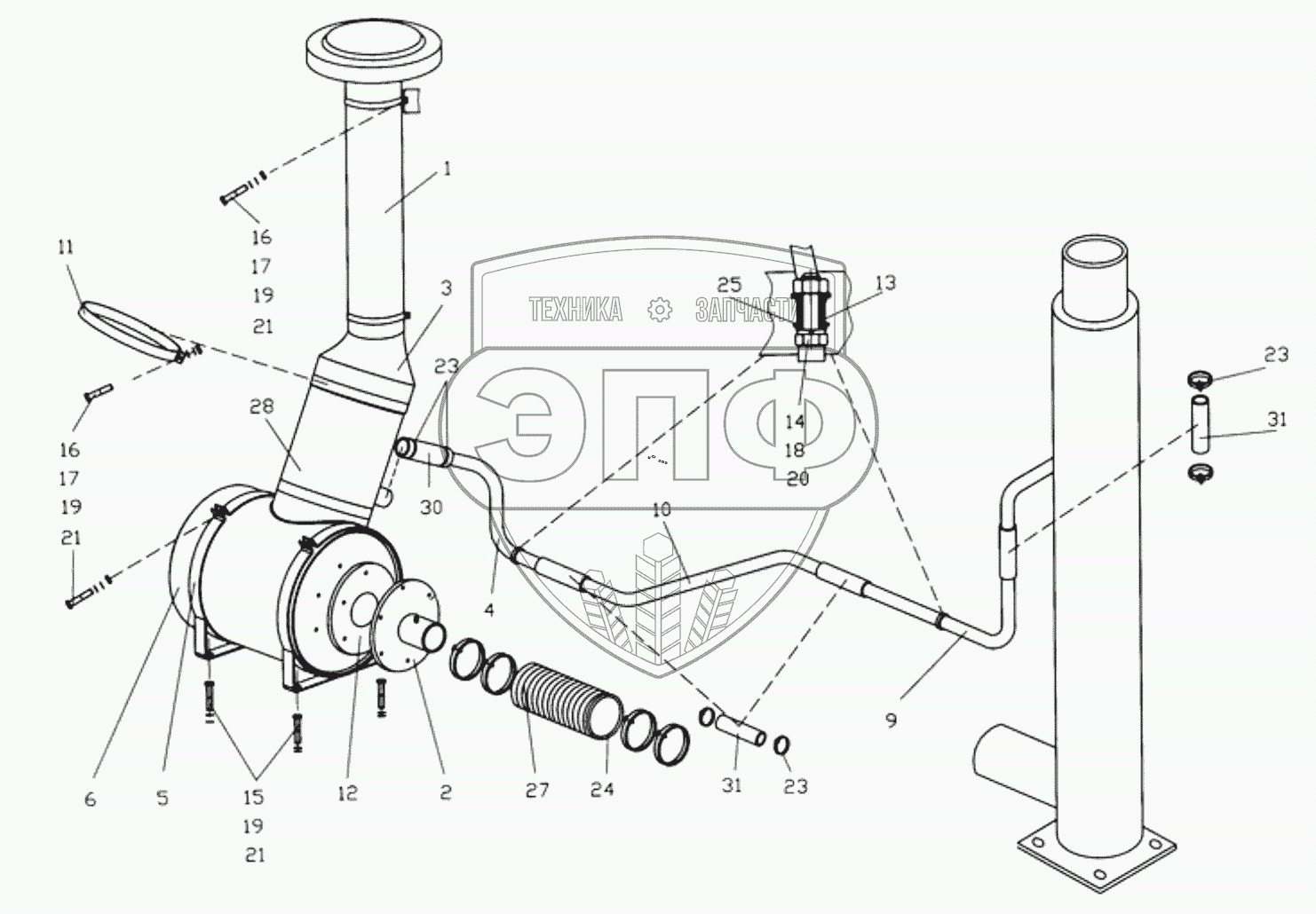 Каталог запасных частей к технике: ПТЗ К-702МБА-01-БКУ. Система очистки воздуха