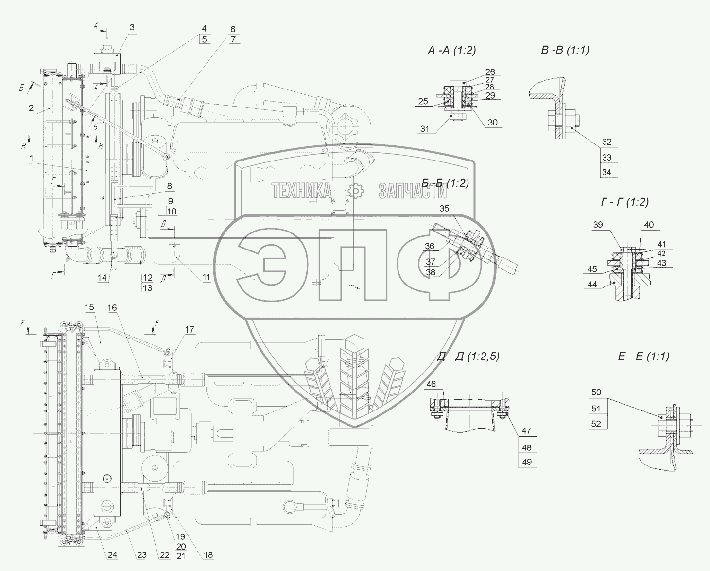 Каталог запасных частей к технике: ПТЗ К-702МБА-01-БКУ. Система охлаждения двигателя