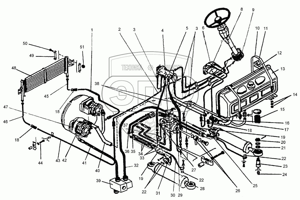 Каталог запасных частей к технике: ПТЗ К-702МБА. Гидросистема управления поворотом