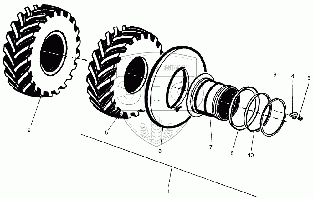 Каталог запасных частей к технике: ПТЗ К-702МБА. Колесо с шиной