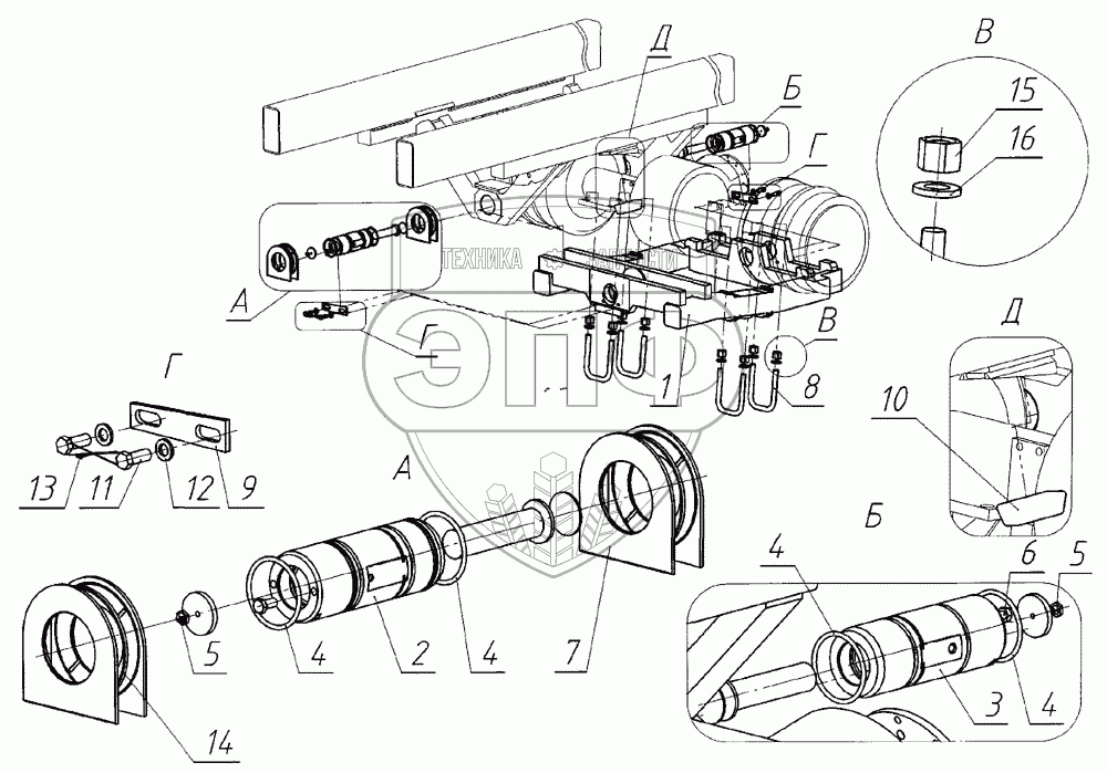 Каталог запасных частей к технике: ПТЗ К-702МБА. Подвеска подмоторного моста