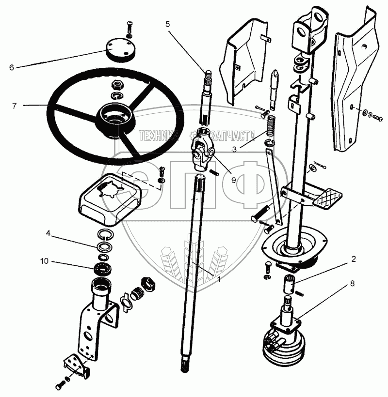 Каталог запасных частей к технике: ПТЗ К-702МБА. Рулевая колонка