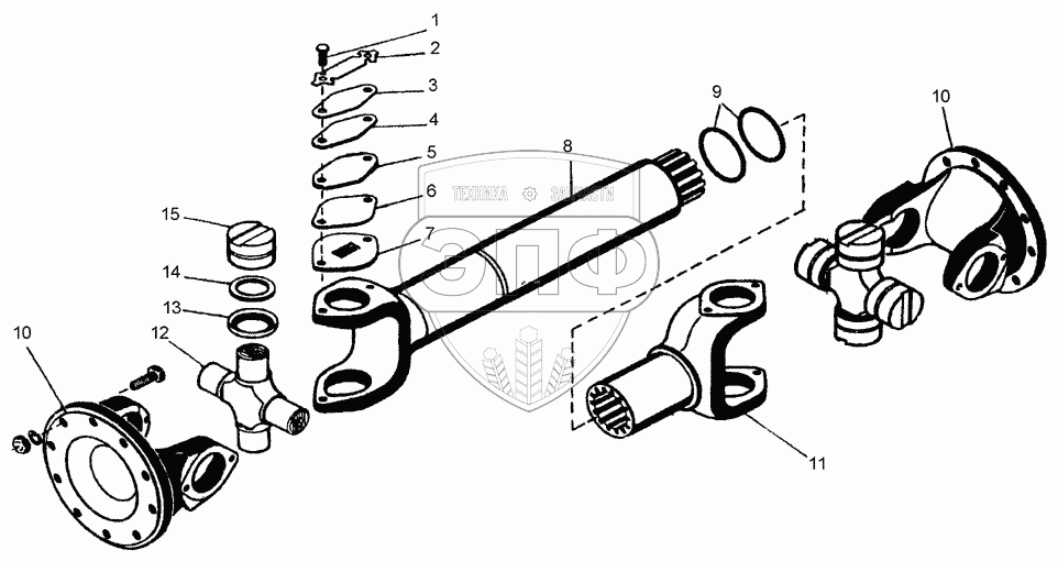 Каталог запасных частей к технике: ПТЗ К-702МБА. Вал карданный переднего моста