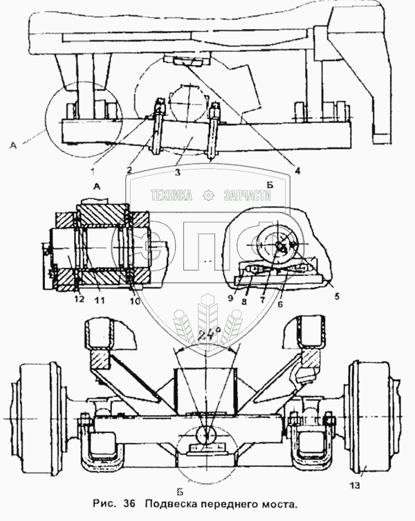 Каталог запасных частей к технике: ПТЗ К-702МВ. Подвеска переднего моста