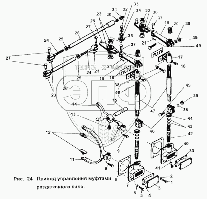 Каталог запасных частей к технике: ПТЗ К-702МВ. Привод управления муфтами раздаточного вала