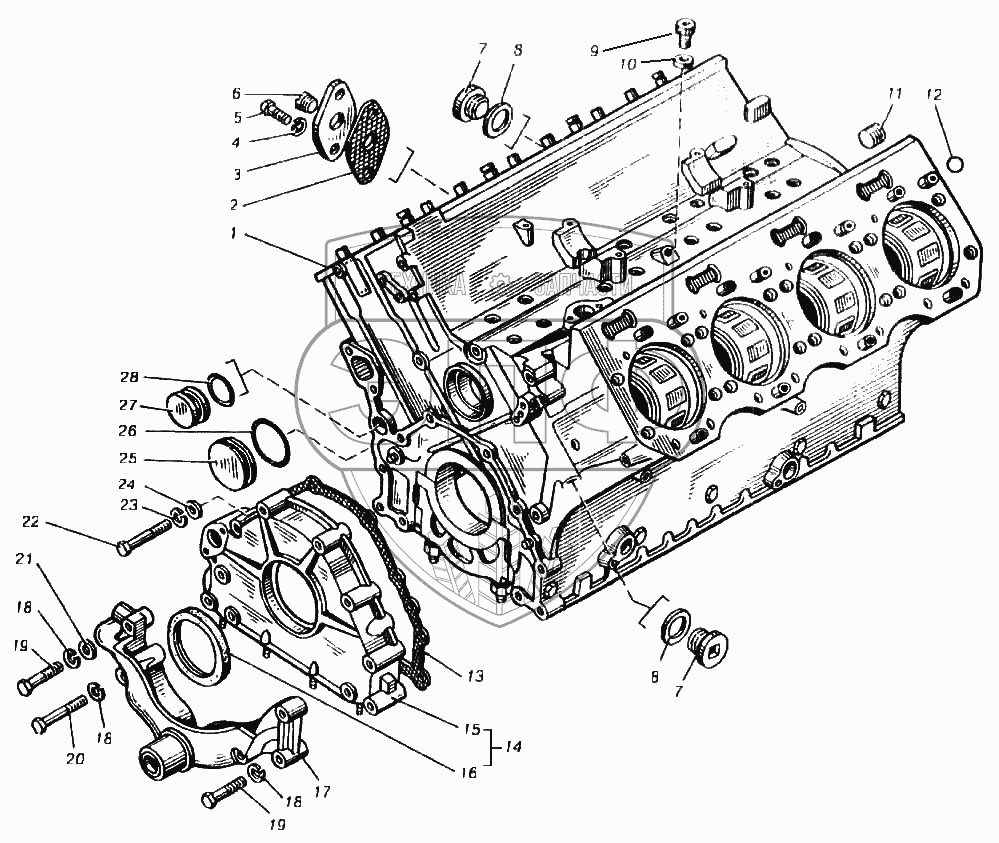 Каталог запасных частей к технике: ПТЗ К-702МВА. Блок цилиндров двигателя ЯМЗ-8423.10
