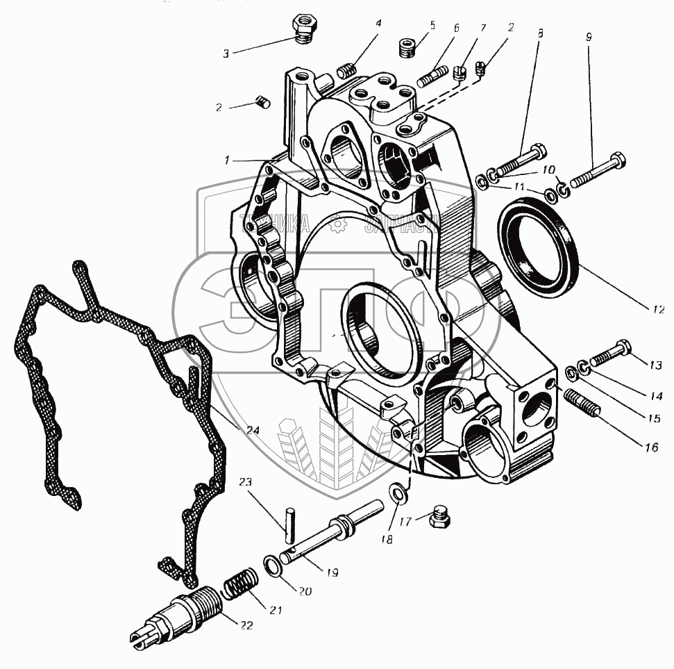 Каталог запасных частей к технике: ПТЗ К-702МВА. Картер маховика двигателя ЯМЗ-8423.10