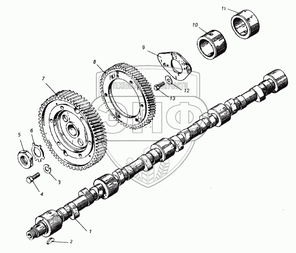 Каталог запасных частей к технике: ПТЗ К-702МВА. Распределительный вал двигателя-238НД