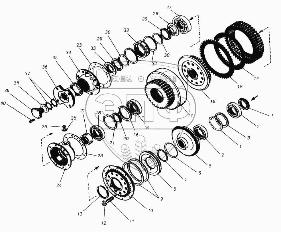 Каталог запасных частей к технике: ПТЗ К-702МВА. Вал ведущий, I фрикцион переднего хода