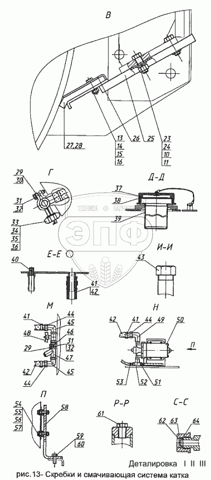 Каталог запасных частей к технике: Раскат ДУ-85. Скребки и смазывающая система катка