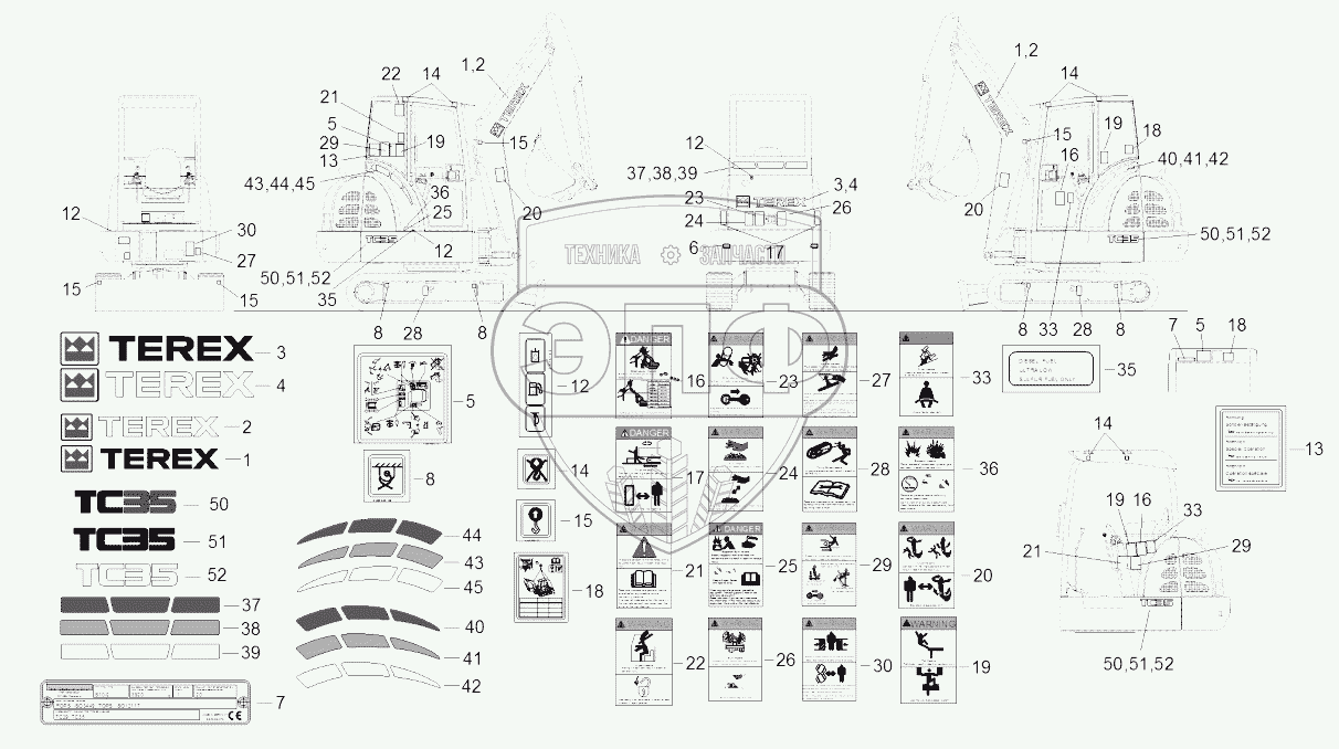 Каталог запасных частей к технике: RM-Terex TC35. Ansi Stickers Tc00351016>