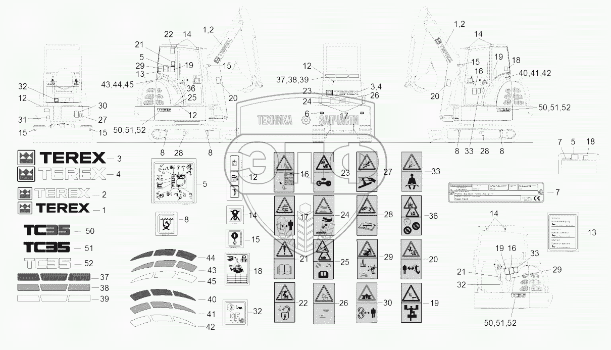 Каталог запасных частей к технике: RM-Terex TC35. Iso Stickers Tc00351016>