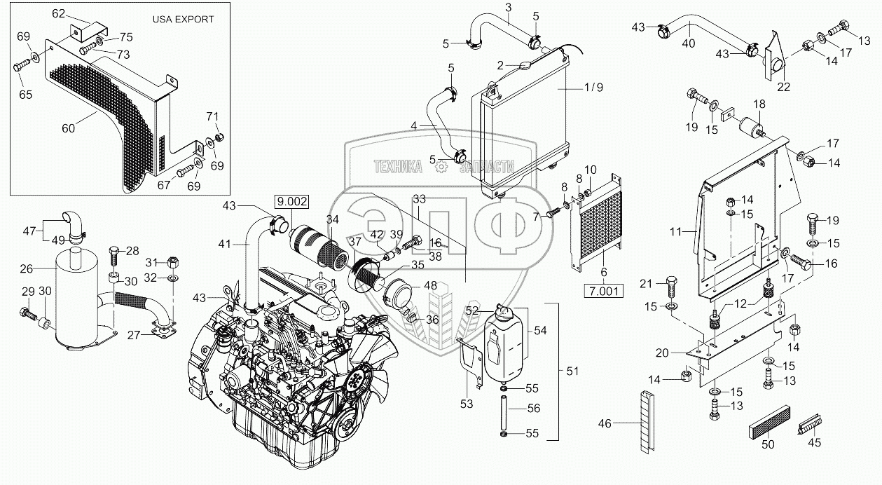 Каталог запасных частей к технике: RM-Terex TC35. Mounting Parts - Engine