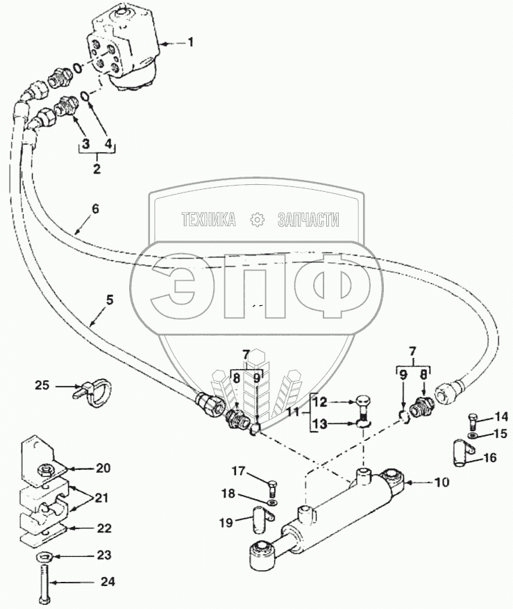 Каталог запасных частей к технике: RM-Terex TLB-815. 2WD гидравлическая схема, цилиндр управления