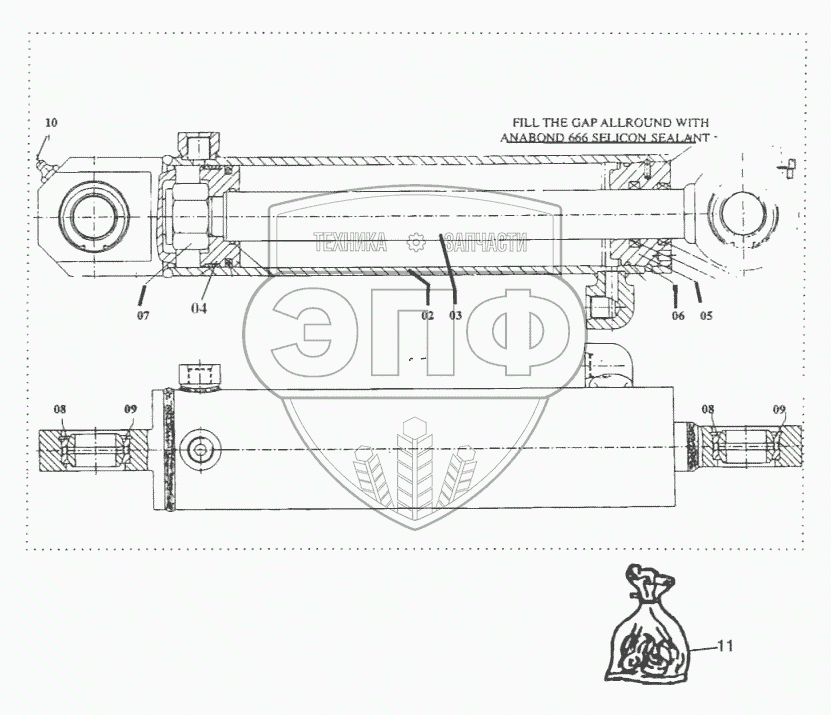 Каталог запасных частей к технике: RM-Terex TLB-825. Цилиндр управления