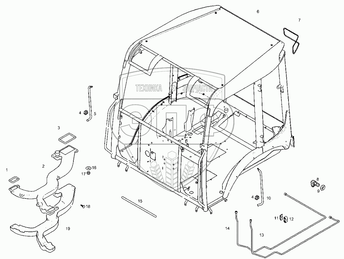 Каталог запасных частей к технике: RM-Terex TLB-840. Рама кабины