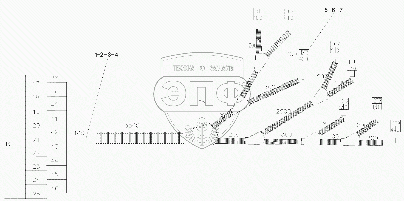 Каталог запасных частей к технике: SANY QY50CS93. 10181949 Harness, solenoid valve
