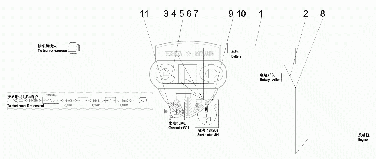 Каталог запасных частей к технике: SANY SSR120AC-8. 13968341 Power supply assembly