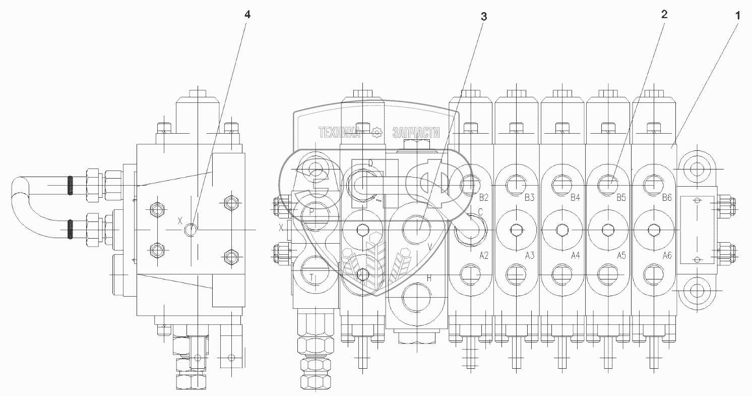 Каталог запасных частей к технике: SANY STC250H. 10138579 Valve GP, multiway