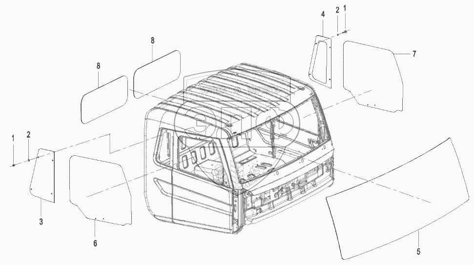 | 8 | 11388313 | Glass, rear window, cab | Нет на складе |