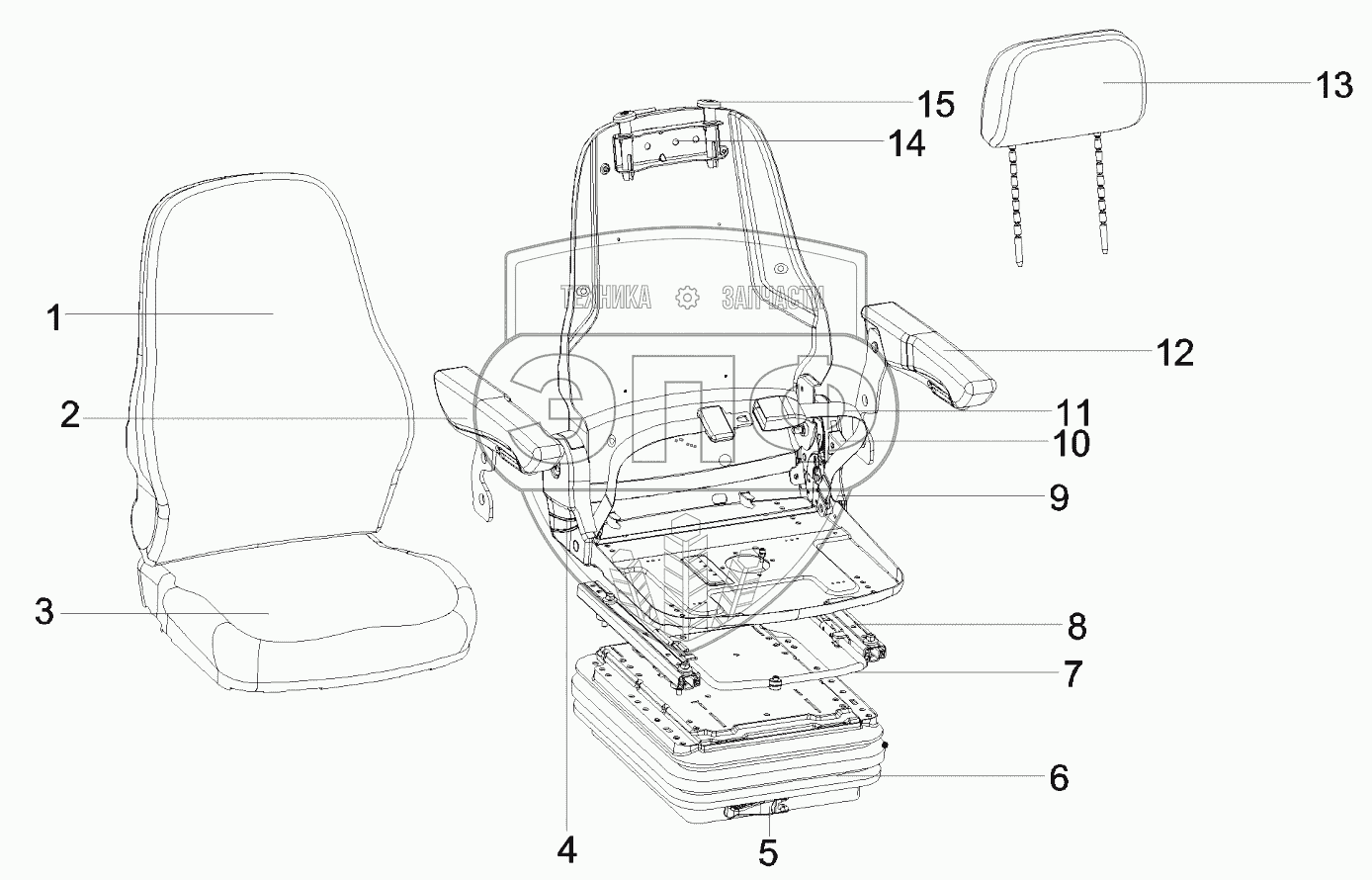 Каталог запасных частей к технике: SANY SY55C9. 60197277 Mechanical Suspension Driver seat