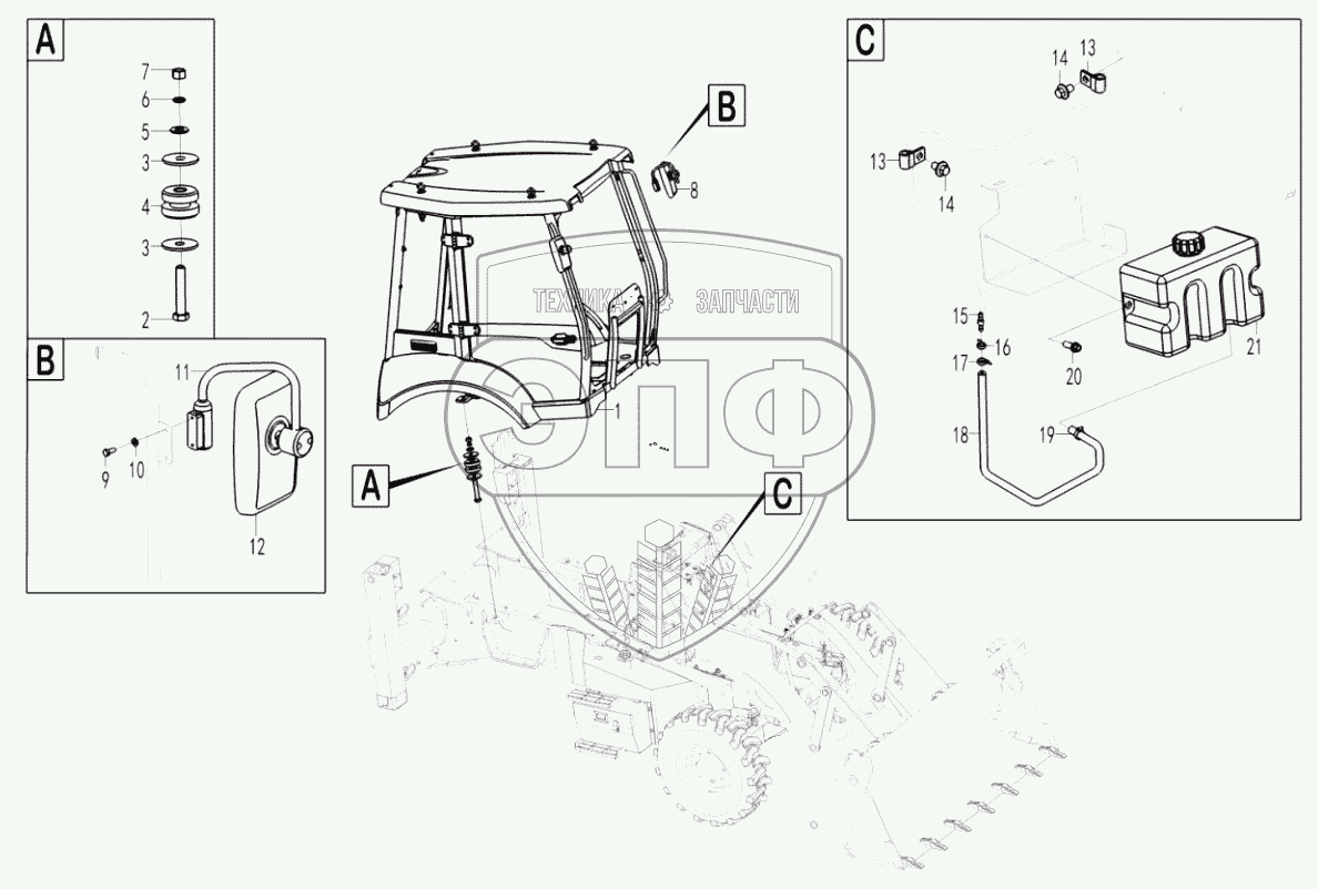 Каталог запасных частей к технике: SDLG B877. Cab assembly