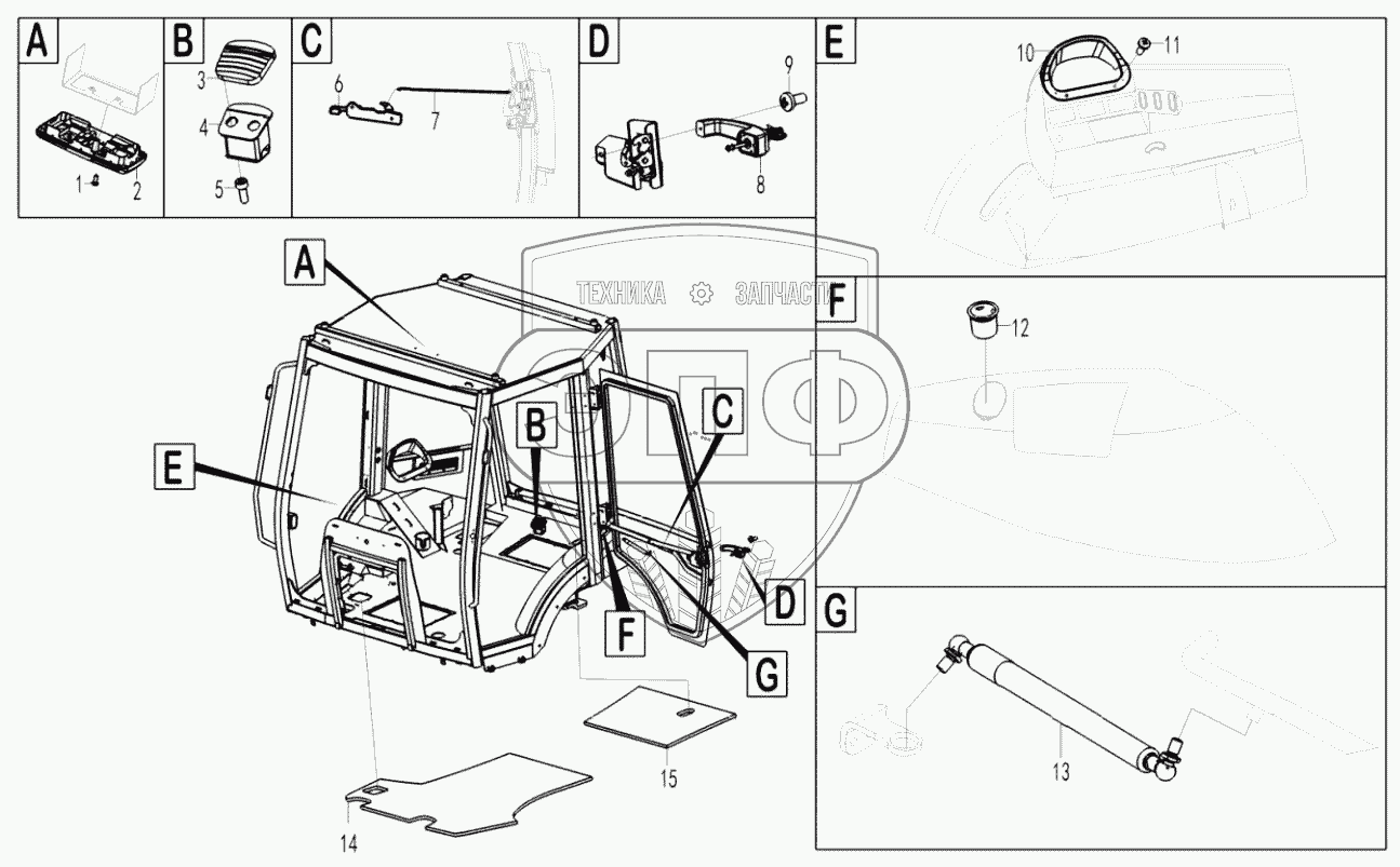 Каталог запасных частей к технике: SDLG B877. Cab assembly