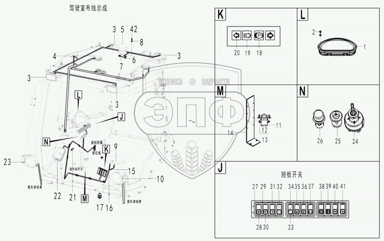 Каталог запасных частей к технике: SDLG B877. Electric assembly-cab