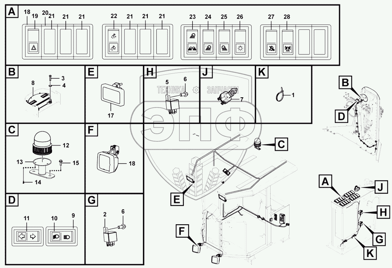 Каталог запасных частей к технике: SDLG G9138. Cab electric system