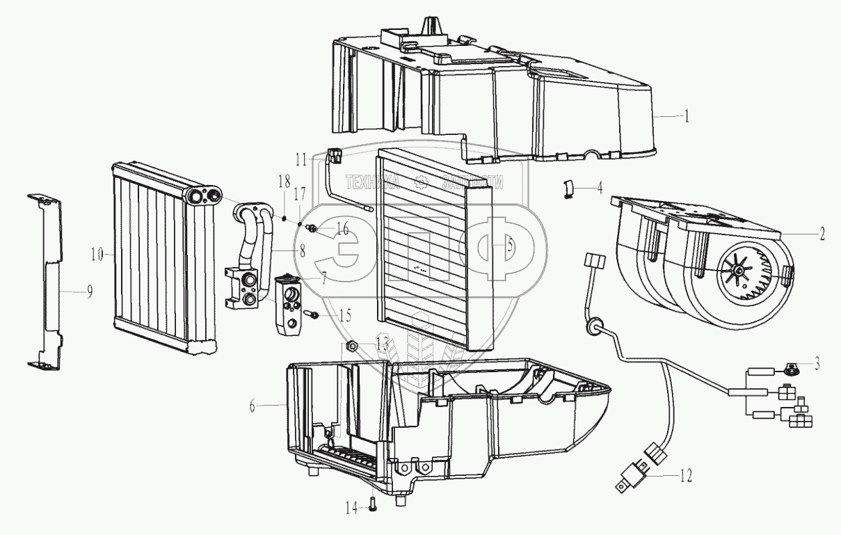 Каталог запасных частей к технике: SDLG G9190. Evaporator assembly (330112)