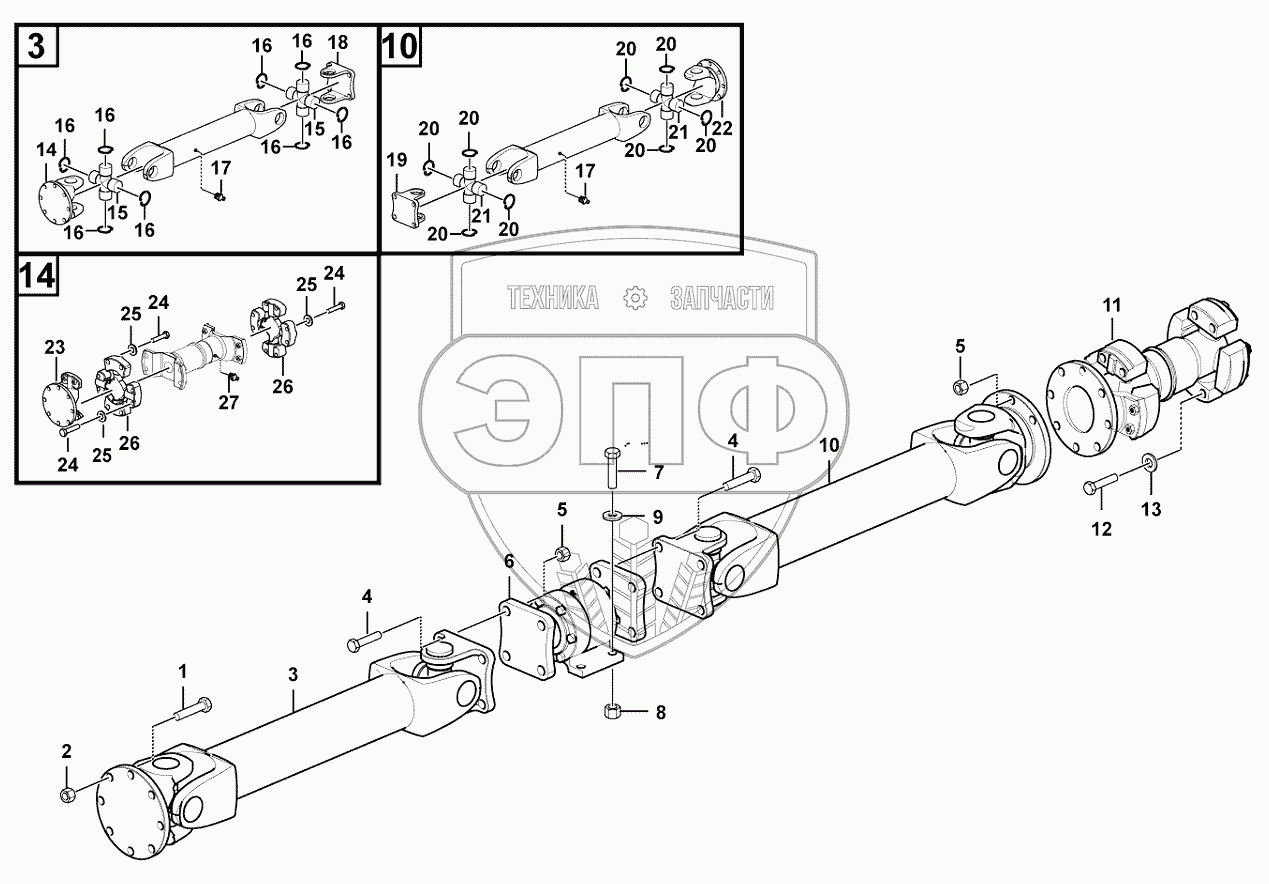 Каталог запасных частей к технике: SDLG L948F. Propeller shaft system отсюда