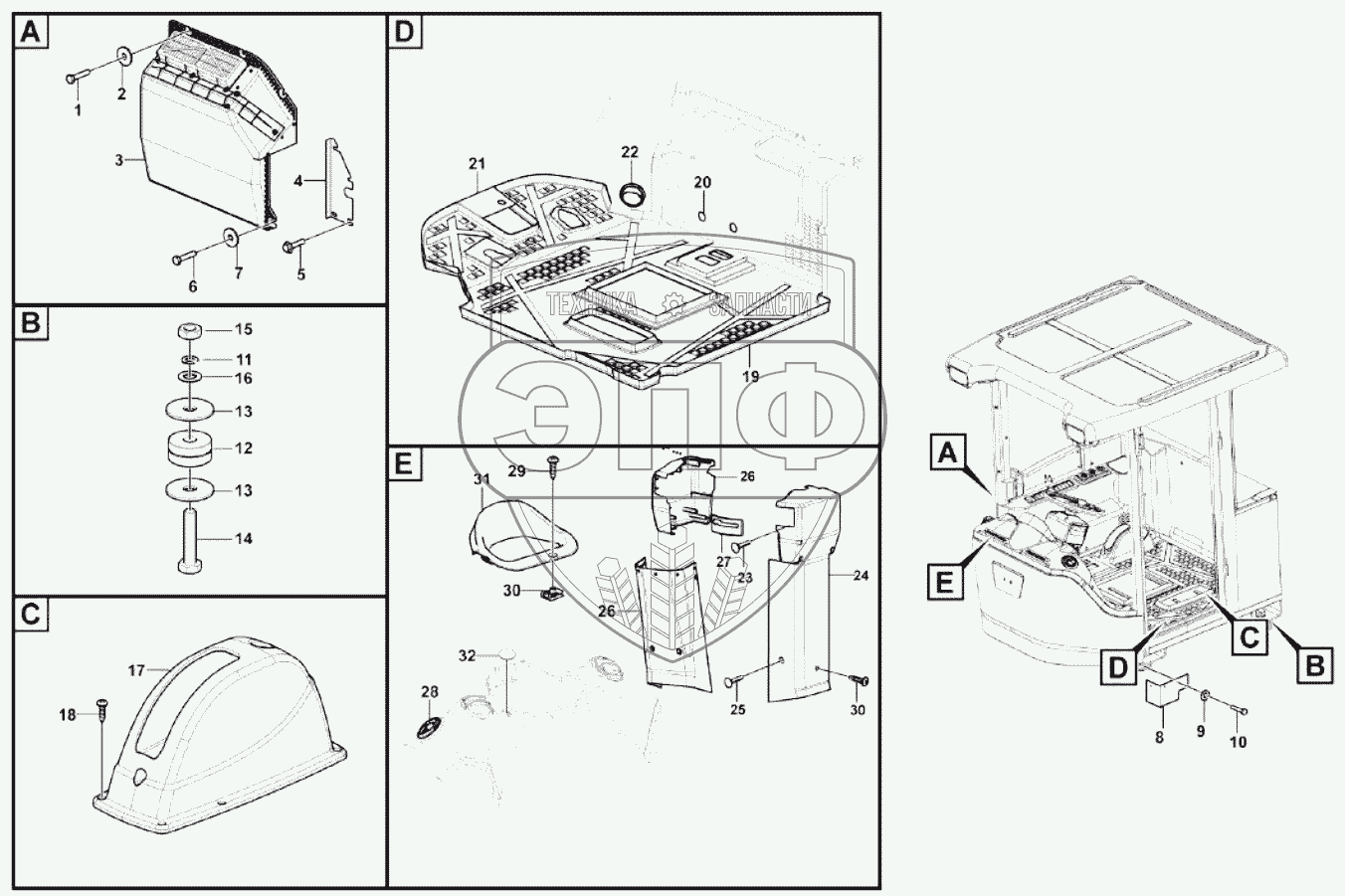 Каталог запасных частей к технике: SDLG L953N. Cab accessories