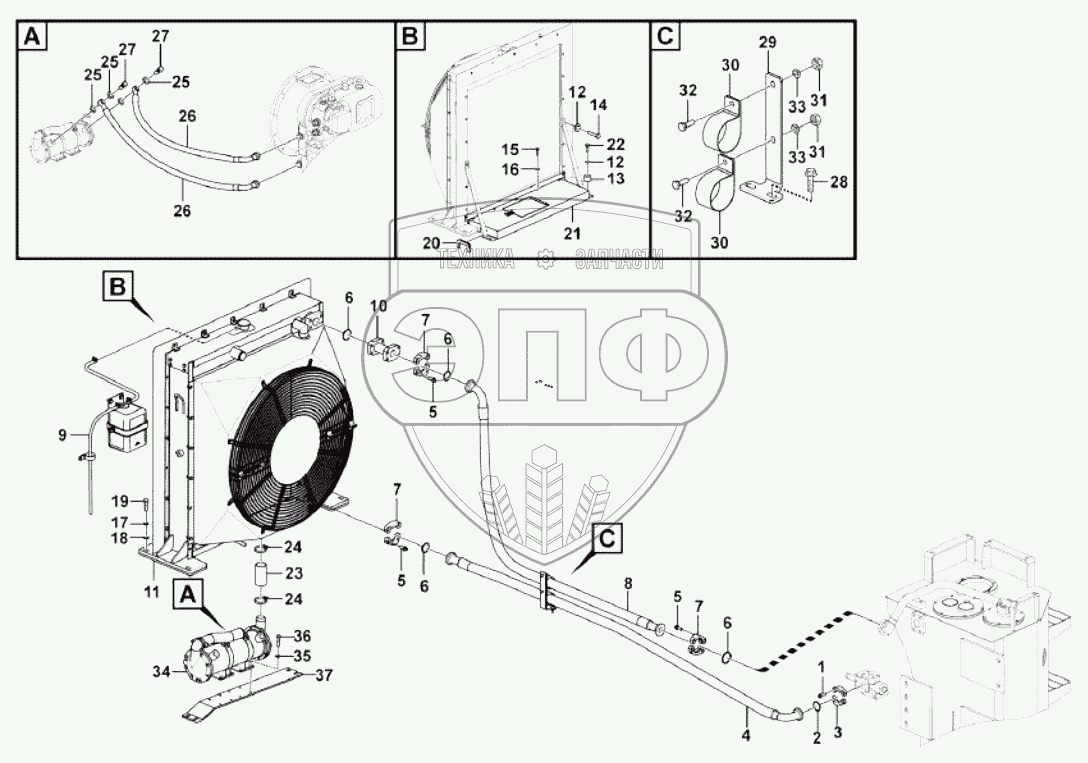 Каталог запасных частей к технике: SDLG L953N. Cooling system
