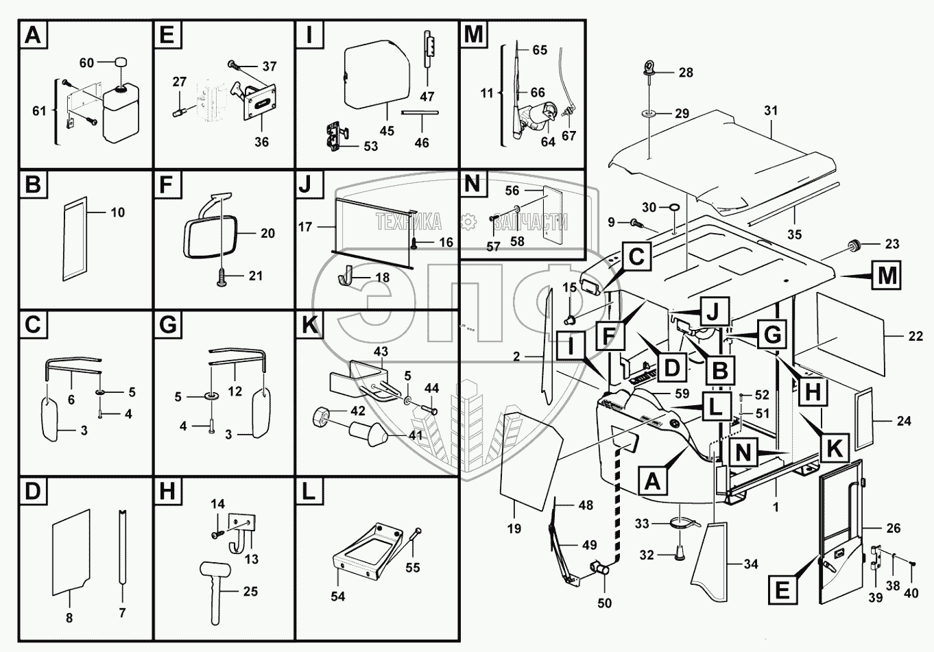 Каталог запасных частей к технике: SDLG L958F. Cab