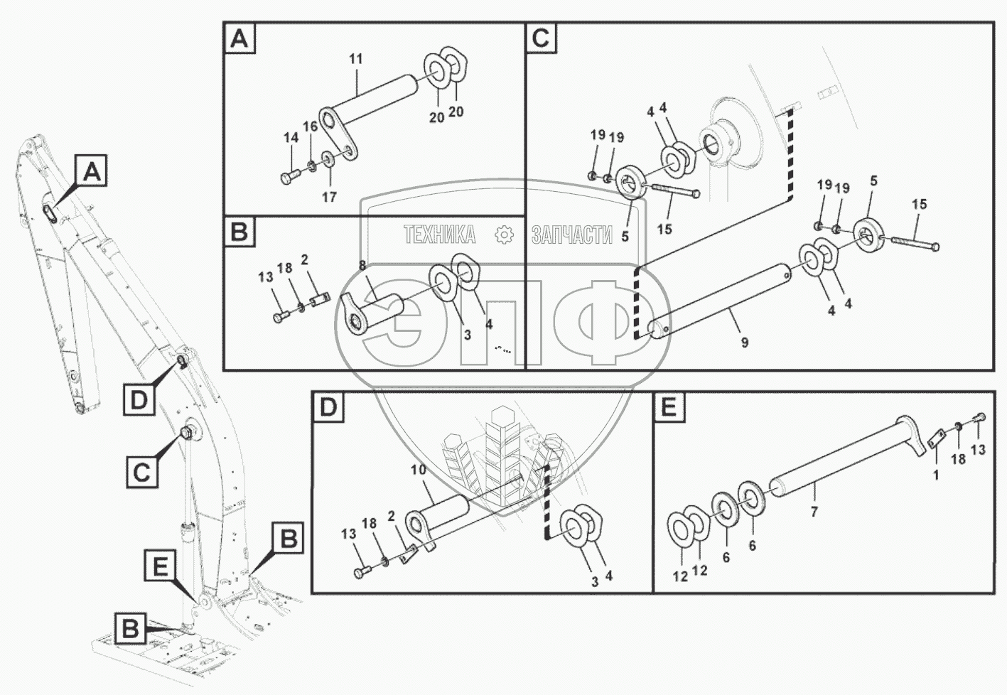 Каталог запасных частей к технике: SDLG LG6150E. 11213370 Links to boom