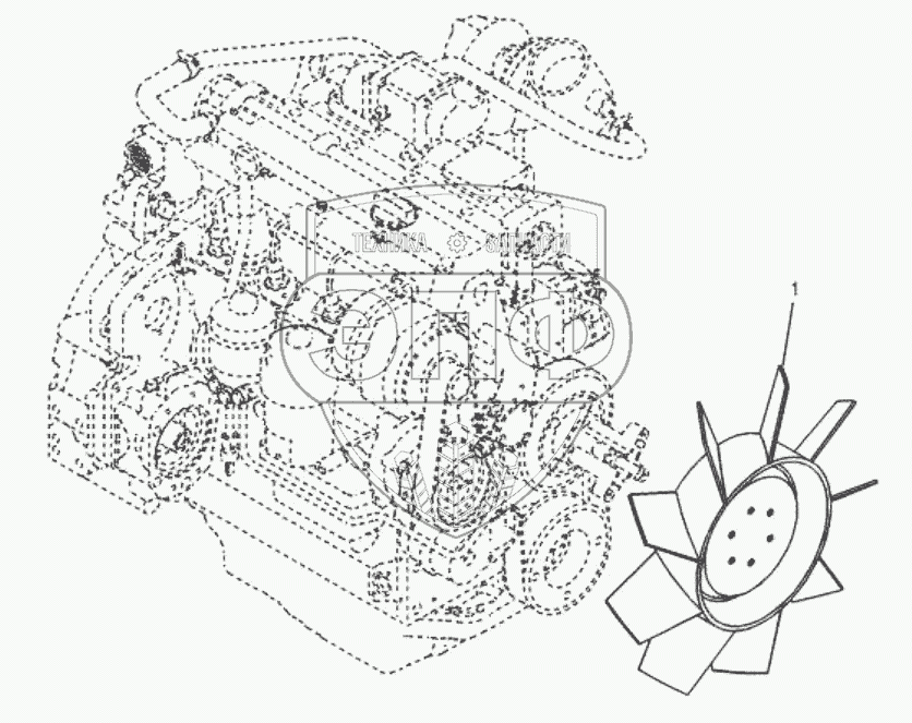 Каталог запасных частей к технике: SDLG LG6150E. 11213470 Cooling fan mounting