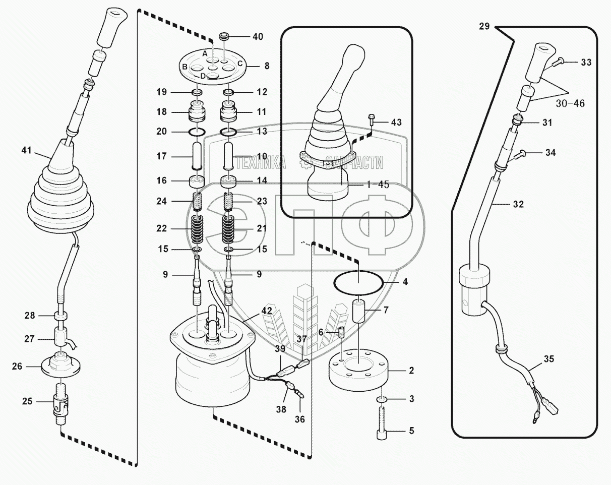 Каталог запасных частей к технике: SDLG LG6210E. Servo system, remote control valve