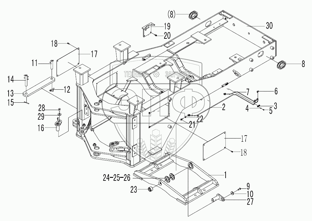 Каталог запасных частей к технике: SDLG LG918. LG9180K2 Rear frame assembly