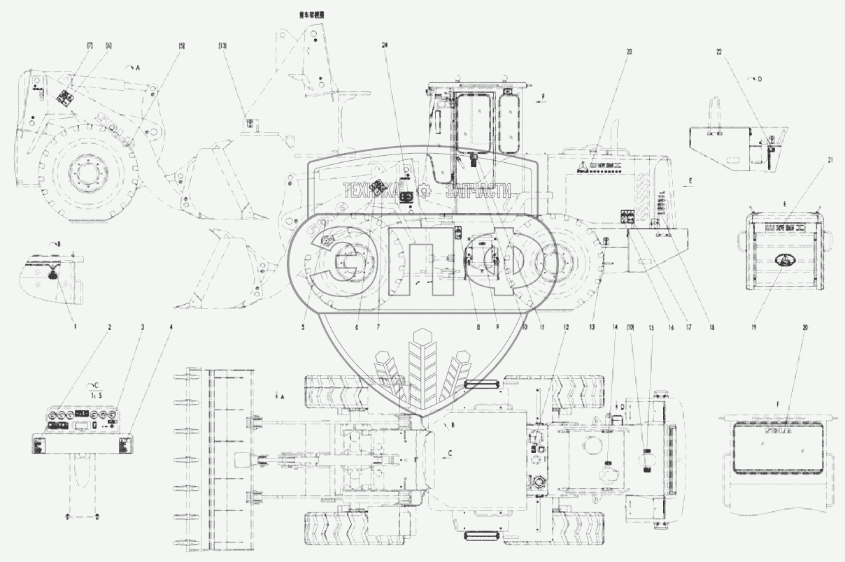 Каталог запасных частей к технике: SDLG LG933L. Таблички и знаки