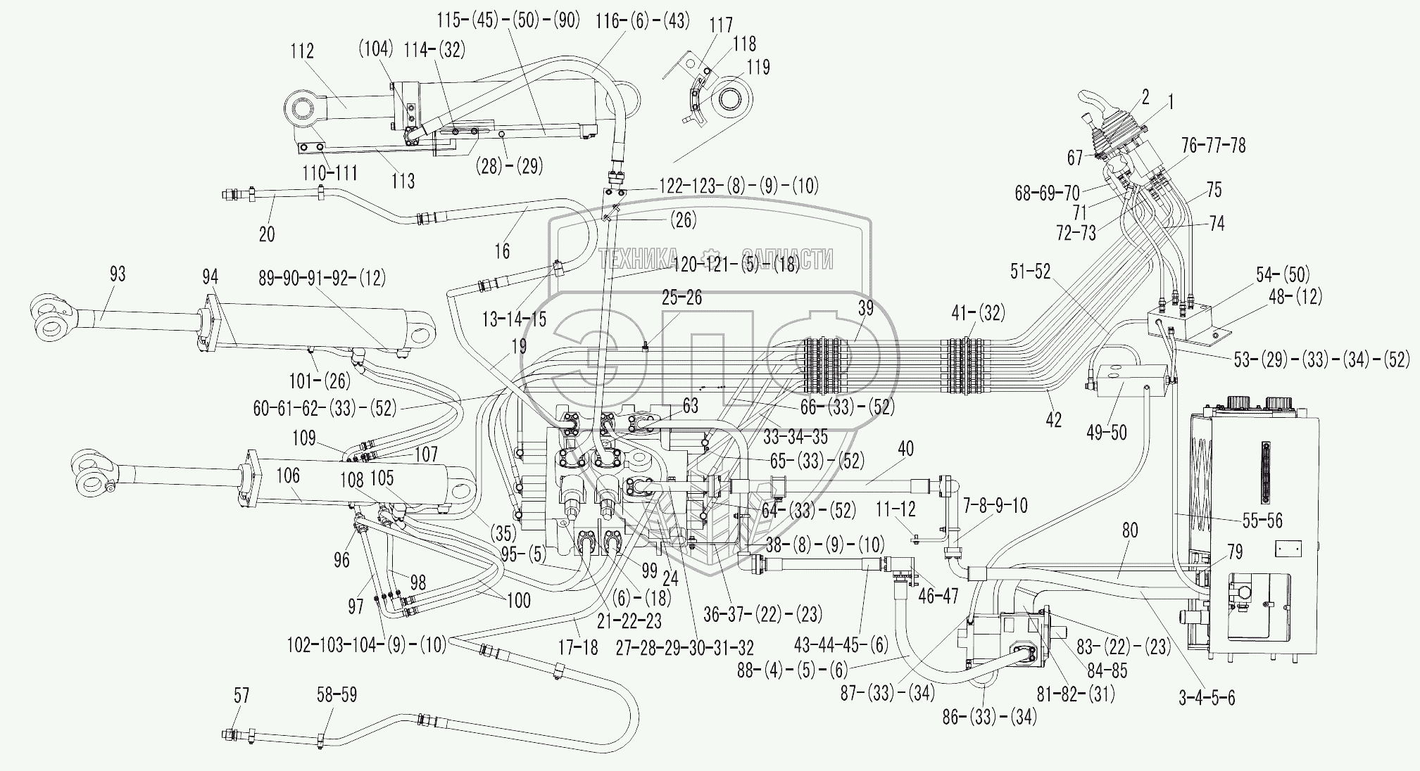 | 99 | 2913000835 | BIG CHAMBER THREE-WAY TUBE OF LIFTING CYLINDER | Нет на складе | |