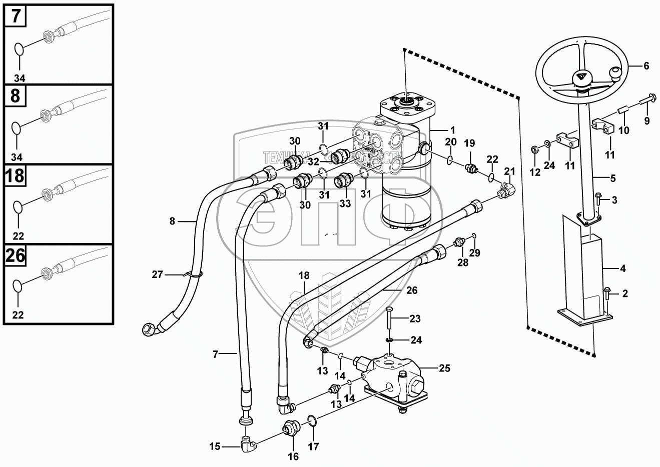 Каталог запасных частей к технике: SDLG LG952N. Steering gear assembly