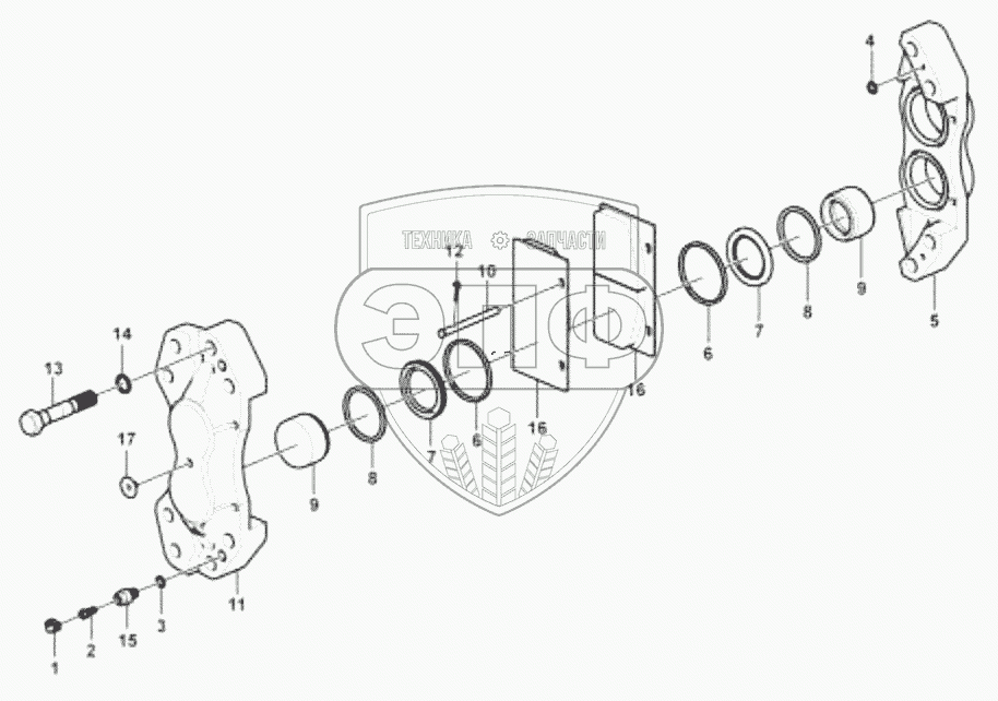 Каталог запасных частей к технике: SDLG LG953N. Brake caliper assembly (371328)