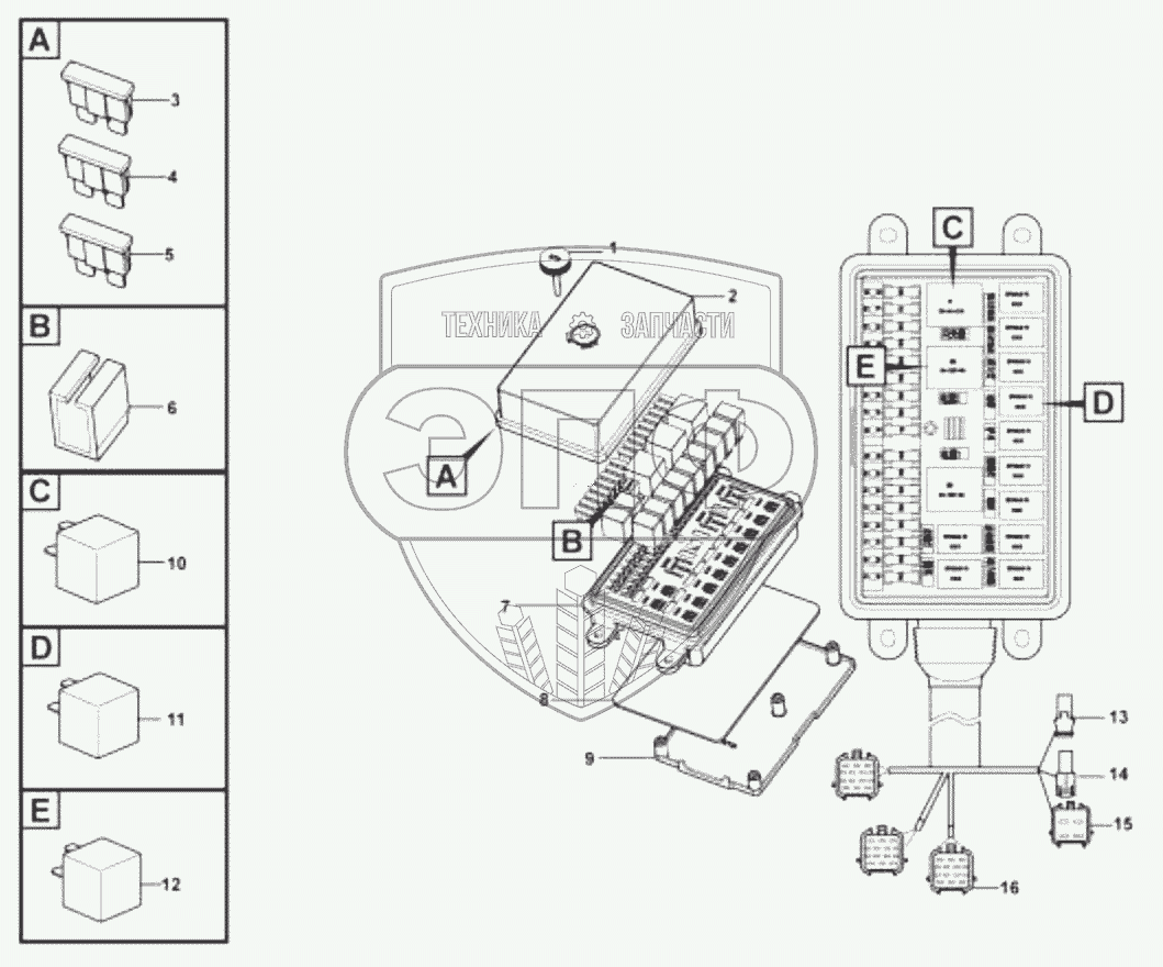 Каталог запасных частей к технике: SDLG LG953N. Fuse and relay unit (330602)