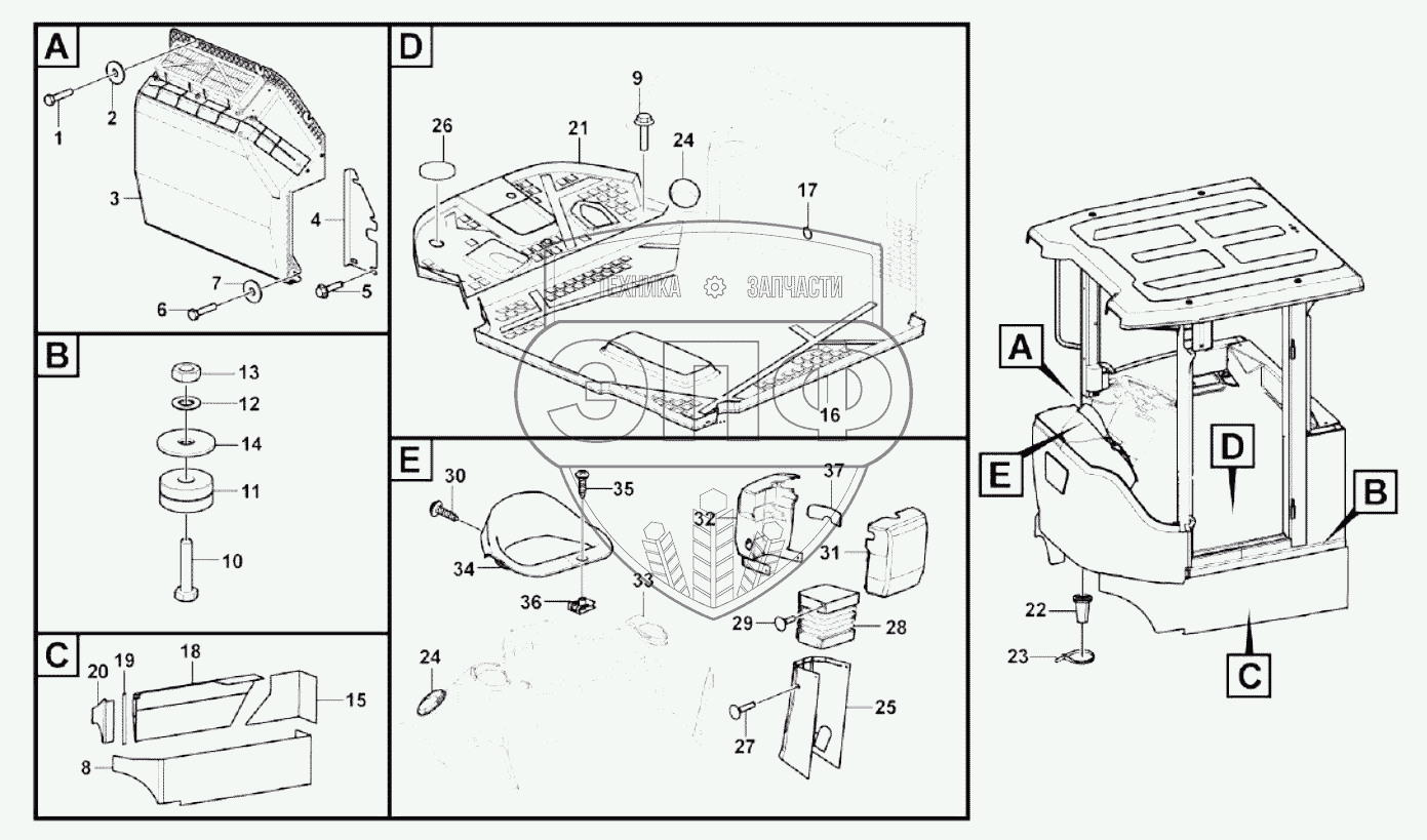 Каталог запасных частей к технике: SDLG LG956FH. Cab accessories