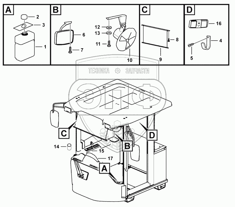 Каталог запасных частей к технике: SDLG LG956L. Cab assembly
